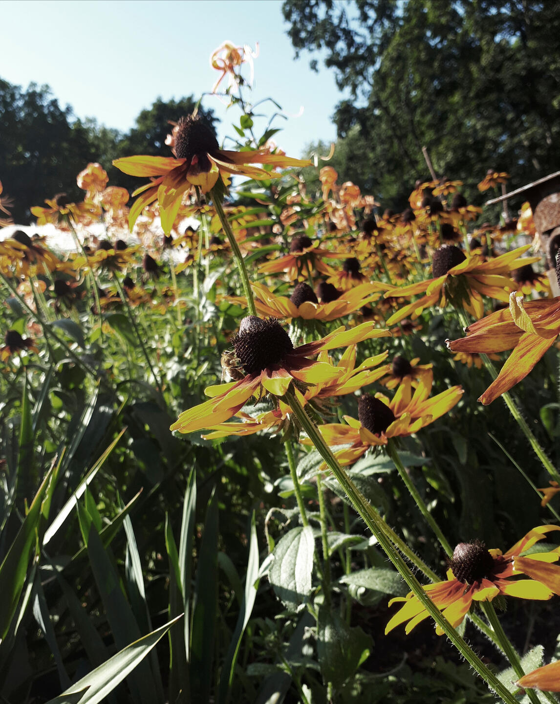 while making my way down I stopped for a moment to look up only to be met by the beauteous view of the crowns of the trees softly swaying in the wind, making them look as if they were dancing to the forgotten, vanished melodies of old, long bygone times where everything still seemed to be in harmony. If you listened closely you could hear the fairies chime in, quietly and softly, with their golden little voices, singing you tales of times immemorial, of utterly distant memory.