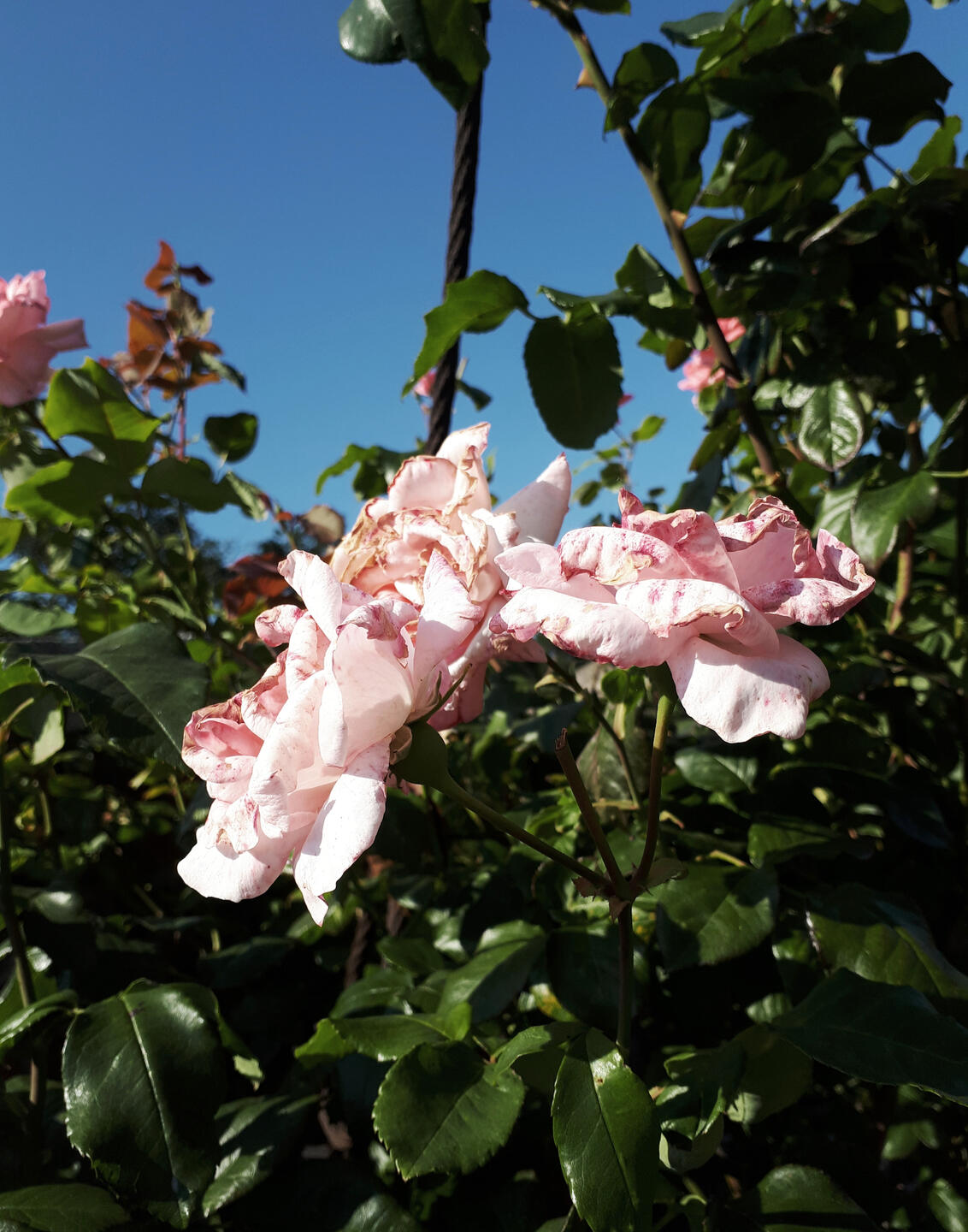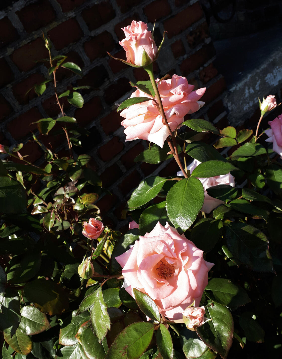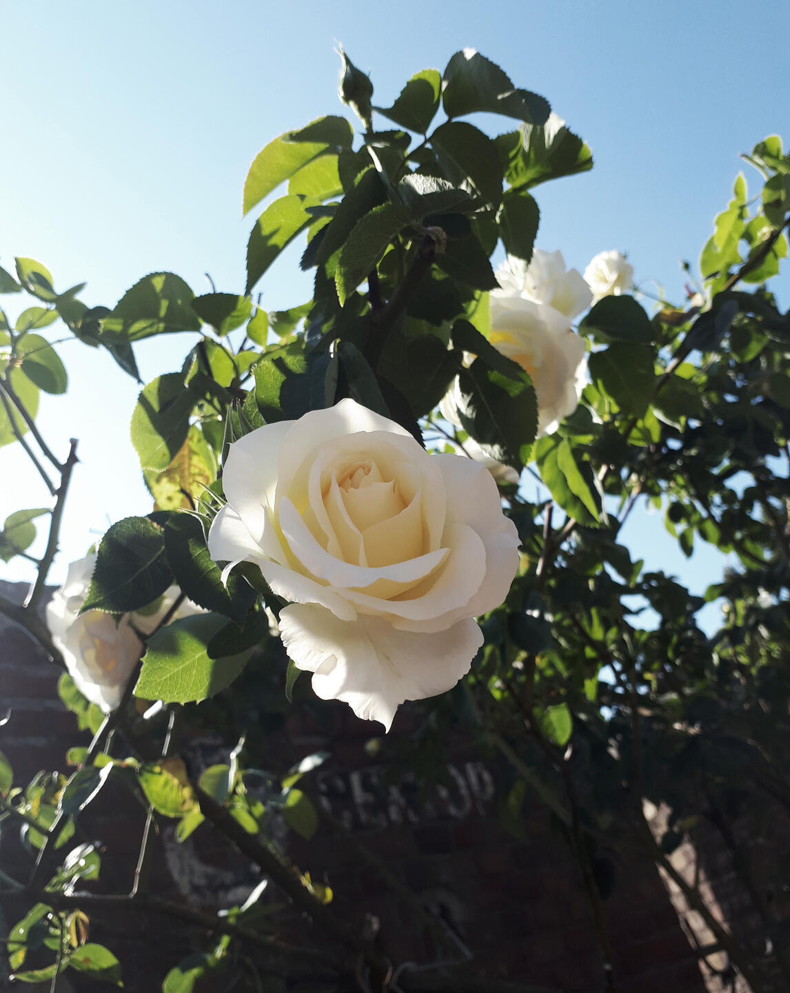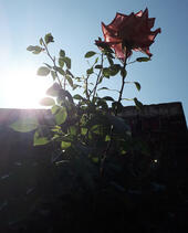 to most people it would probably be the most inconspicuous or uninteresting one out of them at first because it had only two blooms and the other rose trees were much bigger and more impressive at first sight. But that wasn't the case for me. it grew on a spot where the sun didn't reach when we visited them but because of that it looked even more interesting to me and i could take really pretty pictures of it with the sun in the background.